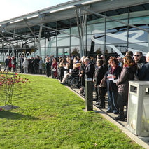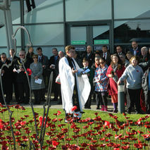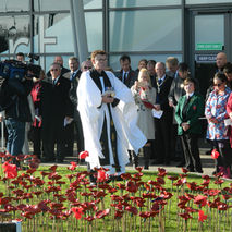 Following a welcome from the CEO of London Southend Airport, Glyn Jones, the Rev Fr. David Wylie, of St Margaret's Leigh-on-Sea held a service of remembrance, with bugler Barry Nunn sounding the Last Post and the gathering of people from around Southend and Rochford observed a 1 minute silence in honour of those who gave their lives for our freedom.