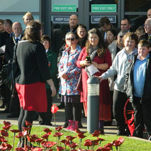 After the service everyone was invited inside to see the brilliant work of artist Ali Ward who, along with the children of Kingsdown School, parents, staff and community members made 100 woven cloth poppies that came together to form the Kingsdown Poppy Tapestry inside the LSA terminal building. With the Kingsdown Poppy Tapestry running the length of the terminal, the middle of the wall was filled with the photographs and stories of community members from the past who served their country in the many conflicts that have been fought since the beginning of the 20th century. The Memory Wall was gathered and collated via social media by the LSA team and there were some great stories of people who lived and died in Southend over the last 100 years.