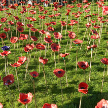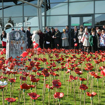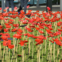 The LSA Poppy Garden was built using 2000 SSFR ceramic poppies that were made by the pupils of the 25 schools that took part in this project from across the Southend and Rochford area. These were mounted and set into the ground in the shape of a 4 petalled Common Poppy with a magnificent centre piece in the form of a Cenotaph with images and text taken from local people involved in the Great War by Esme Taylor and featuring 3 poignant sculptures made by artist John Adams, from clocks depicting significant times of the beginning, Armistice and official end of the war.