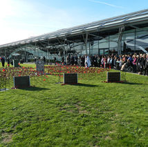 SSFR ceramic poppies were the heart of the London Southend Airport Poppy Garden this year and shone again as part of a multi faceted exhibition that took place around the 100th anniversary of the Armistice of the Great War in 1918. Thanks to the work of our wonderful local artists Ali Ward, Esme Taylor, John Adams, Mary Lister and the LSA and Blade Education teams we have been able to put together an amazing installation and event to celebrate the centenary.